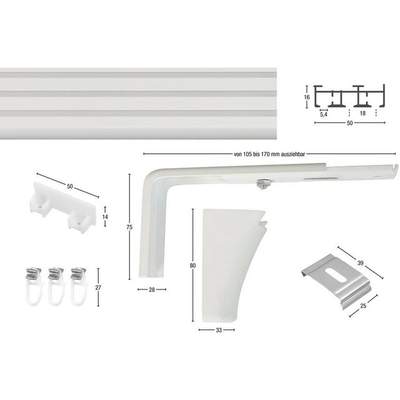 Flächenvorhangschiene 51x17mm, Material: Aluminium, silber sehr einfache und schnelle Montage Direkt vom Hersteller Ihre Flächenvorhang Schiene in hochwertiger Deutscher Markenqualität kaufen. Riesenauswahl für Ihre Flächenvorhang Schiene nach Maß Gardinenschiene 2-läufig Zu Werkspreisen Flächenvorhang-Schiene Nach Maß Ab 16 Gardinenschiene 1 Läufig Die Schiene hat drei Läufe und ist aus Aluminium gefertigt. Set enthält: 1 x 3-läufige Schiene 4 x Deckenclips 2 x Endkappen 1 x Montagezubehör 1 x Montageanleitung Die Flächenvorhangschiene Compact von »Garesa« ist für leichten bis mittelschweren Behang geeignet, für Decken- oder Wandmontage. indeko Flächenvorhangschiene 3-läufig - Deckenmontage Vorhangschienen im Komplettset, von 1 - 5 Innenläufen Produktbeschreibung Für die moderne Fensterdekoration: Die Flächenvorhangschiene nach Maß von indeko ist die perfekte Halterung für die moderne Fensterdekoration. Damit die Schiebevorhänge entsprechend aufgehängt werden können, ist die Vorhangschiene in 30 verschiedenen Längen erhältlich. Ausführung: 3-läufig in Länge 120 cm Gardinia Emia Flächenvorhangschiene Set 3-läufig 225-335cm Alu in Nordrhein-Westfalen - Nettetal